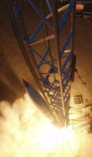 At 5:34 a.m., after being loaded with 300 kg of liquid oxygen, 150 kg of jet fuel, and 3,600 psi of helium, the rocket came to life. The engine fired, the rocket lifted off the pad, and was flying at half the speed of sound almost instantly.